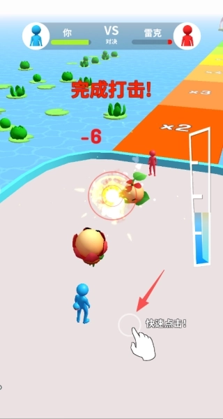 3、快速点击屏幕来释放攻击,借助连击制造高额伤害。另外要留意双方的血量条,当自身处于优势时就持续输出,以快速完成打击并击败对手。