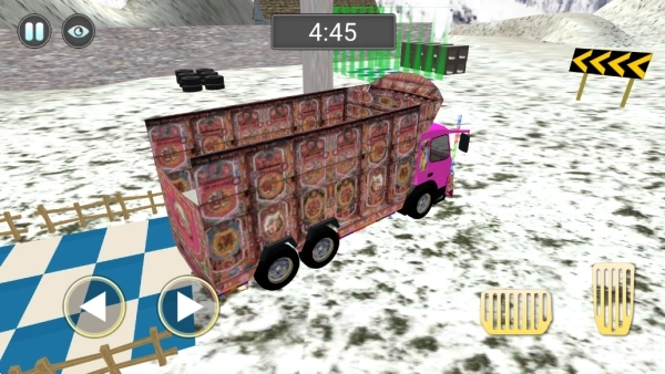 4.用左边的按钮调整方向,右边的按钮操控前进和后退。接下来我们得在五分钟内把货物运到指定位置,这样才算顺利通关。