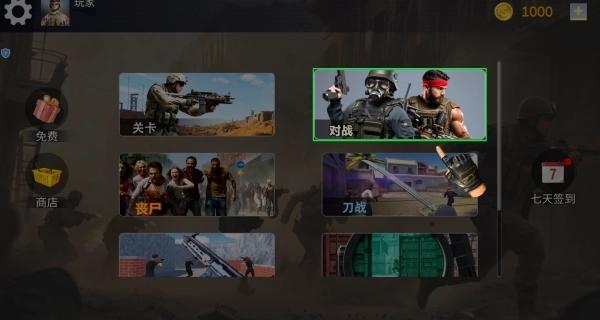 1、进入游戏后,你可以挑选自己喜欢的玩法,像关卡挑战、实时对战、丧尸生存、刀战对决等模式都能选,开启专属于你的枪战冒险之旅。