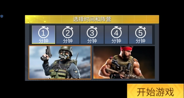3、挑选1到5分钟的战斗时长并选定对应阵营,明确对战规则,为团队协作或单人对战做好准备。