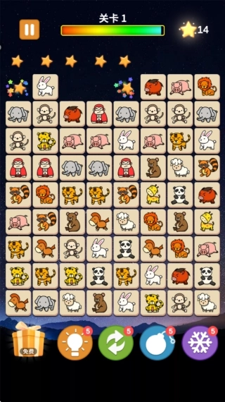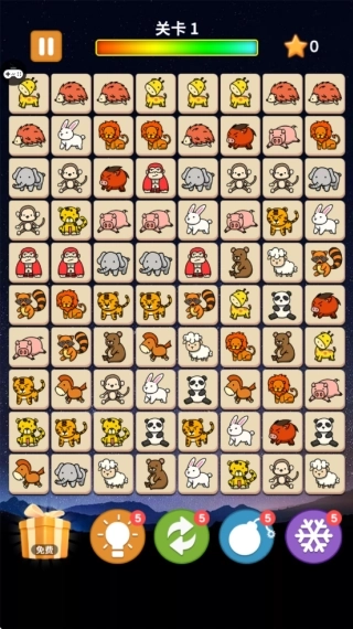 1.如下图所示,玩家进入第一个关卡后的任务是把画面里所有的动物方块进行匹配消除。