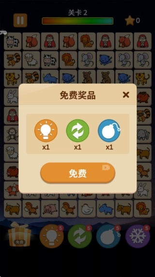 1.进入关卡后,需要找出两两相同的动物方块,在规定时间内完成配对消除,以此推动关卡进度。
