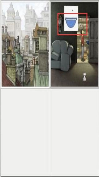 3、然后点击第二格的缩放按钮,将其移动到图的右侧,这样男孩就能在储物室里找到一个蓝色的盆子了。