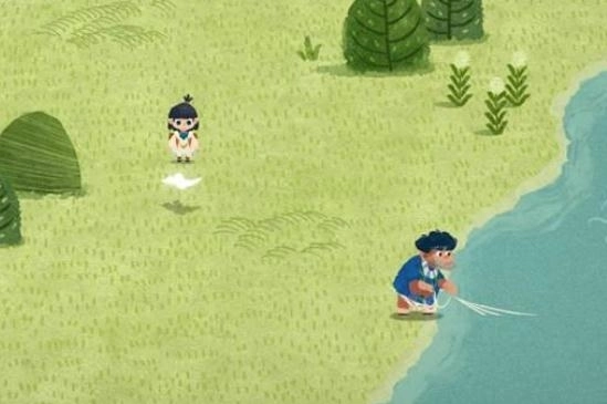 树林里也藏着一块白色碎片,把它拼合进去后,会出现一位名叫“阿伯”的新NPC。阿伯迷失了回家的方向,卡朵得把阿伯所在的版块拼接到之前那座房子的东边位置。
