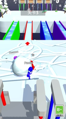 在游戏里,玩家得操控角色持续收集雪球,让雪球越滚越大,只要确保雪球大到能顺利滚到对岸就行。路上还能捡到各种功能道具来增添趣味,比如加速道具能提升移动速度,这样前期收集雪球会更高效,雪球也能变得更大。