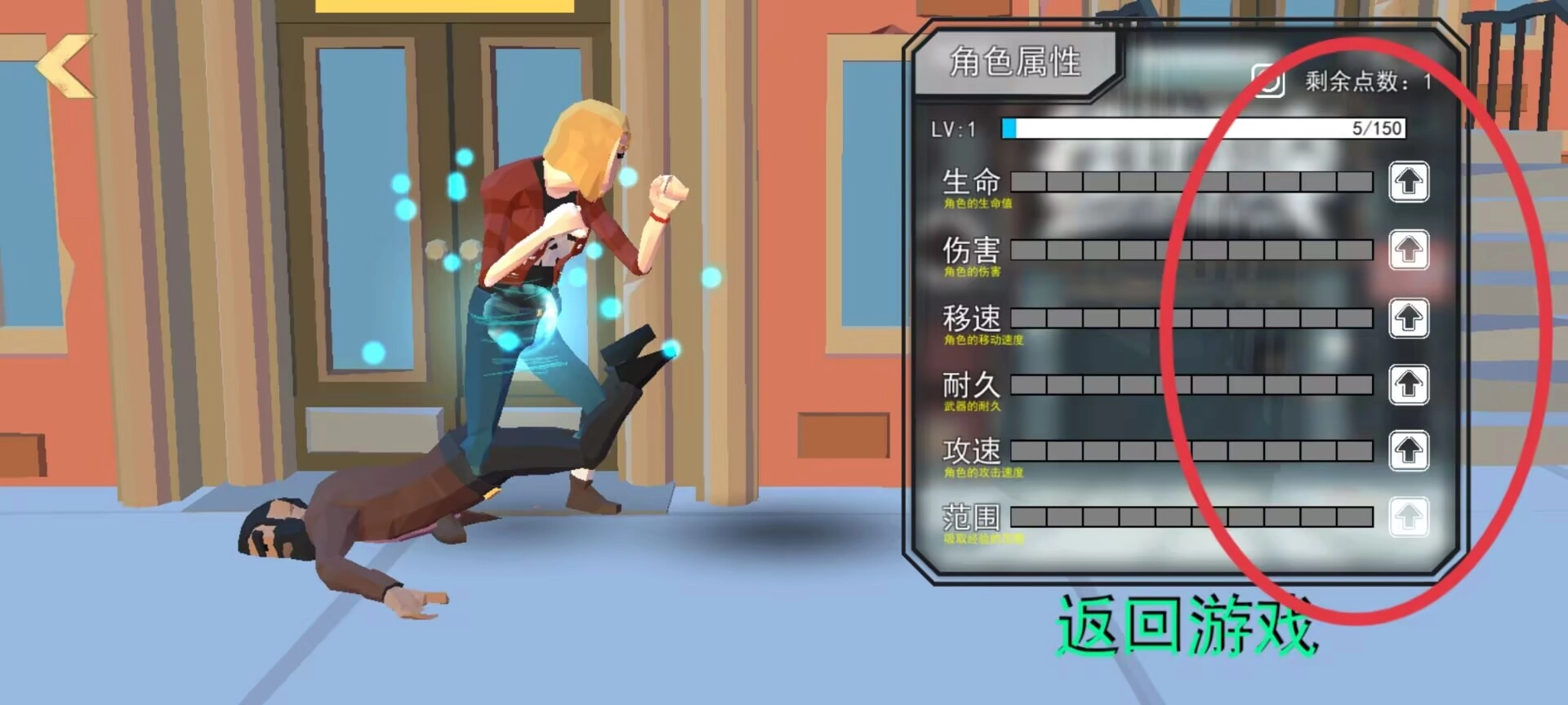 3、每击败一个敌人都能让底部的能量槽累积能量,等能量槽蓄满后,就能进入强化界面去提升角色各项战斗属性的数值。