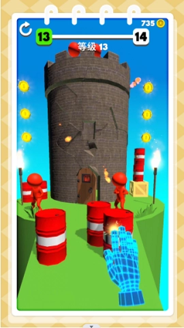 2、游戏操作简单。玩家控制火柴人的激光手套和各种道具,滑动手指攻击敌人。