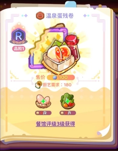 在这款游戏里,菜品同样划分了多个等级,包括R级、SR级、SSR级和UR级,其中UR级是最高等级。UR级的菜谱残卷获取难度较大,但售价相当高。下面为大家分享一些UR级别的菜谱。