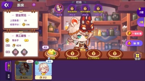 从经营角度来看,这组里嫦娥、青行灯和僵尸新娘的S级表演能有效提升经营成效,剪刀手爱德华能让客人快速用餐,再搭配姜子牙的“再来一份”技能,算得上是一套超强阵容了。