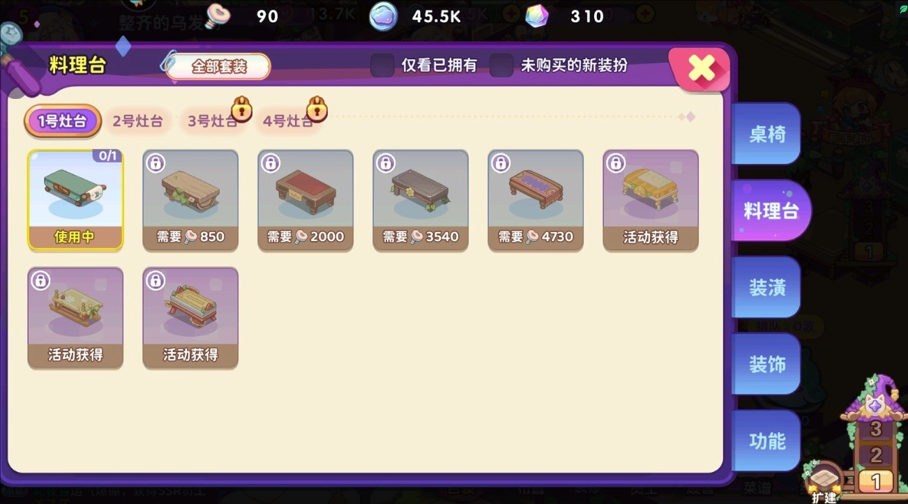 1、灶台场景:2楼灶台,可烹饪甜品和饮品。