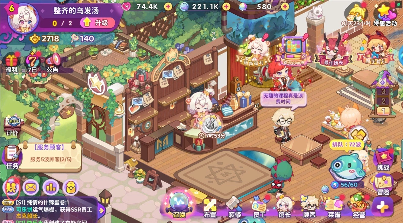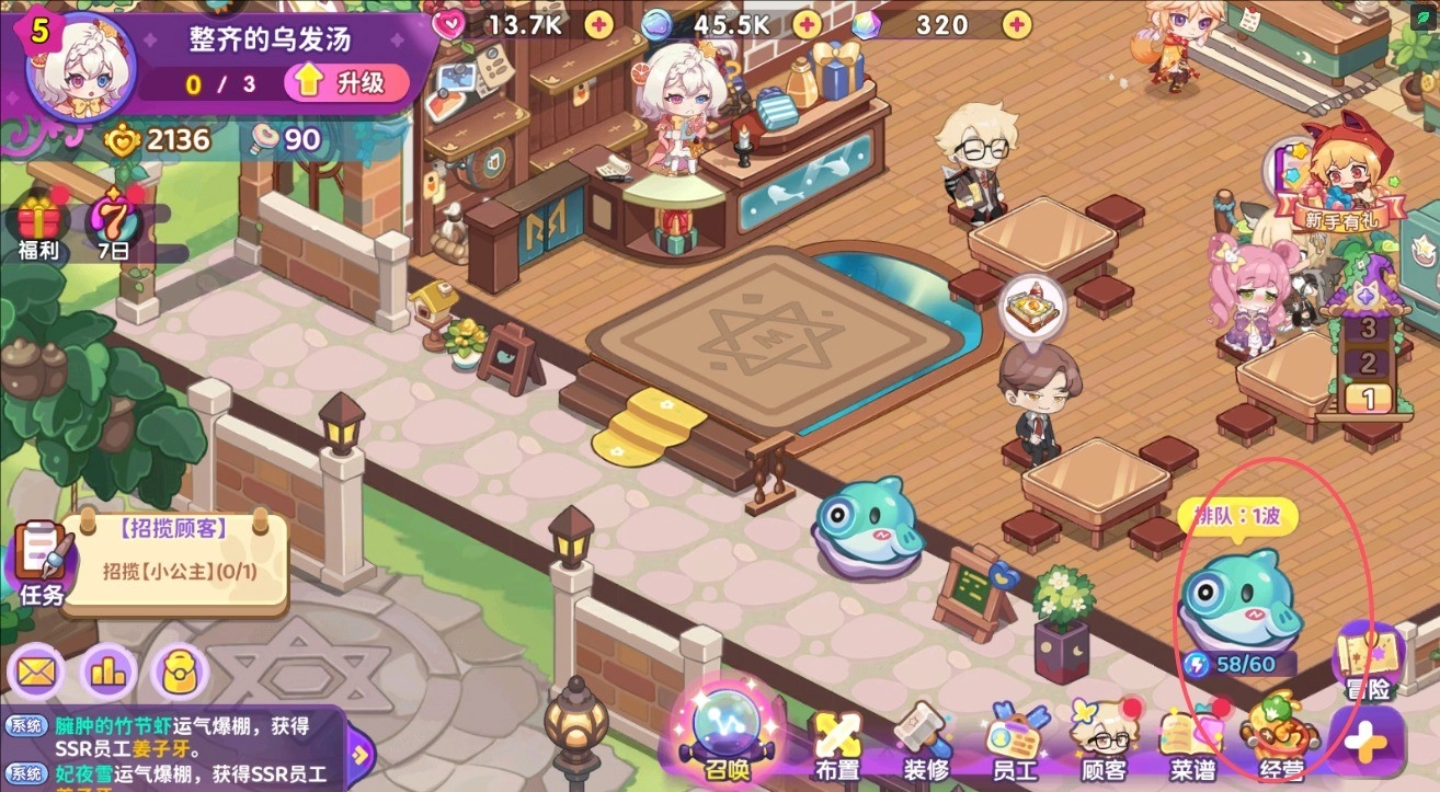 1、先依据左侧的任务开展操作,像招呼客人、解锁菜谱这类都包含在内。