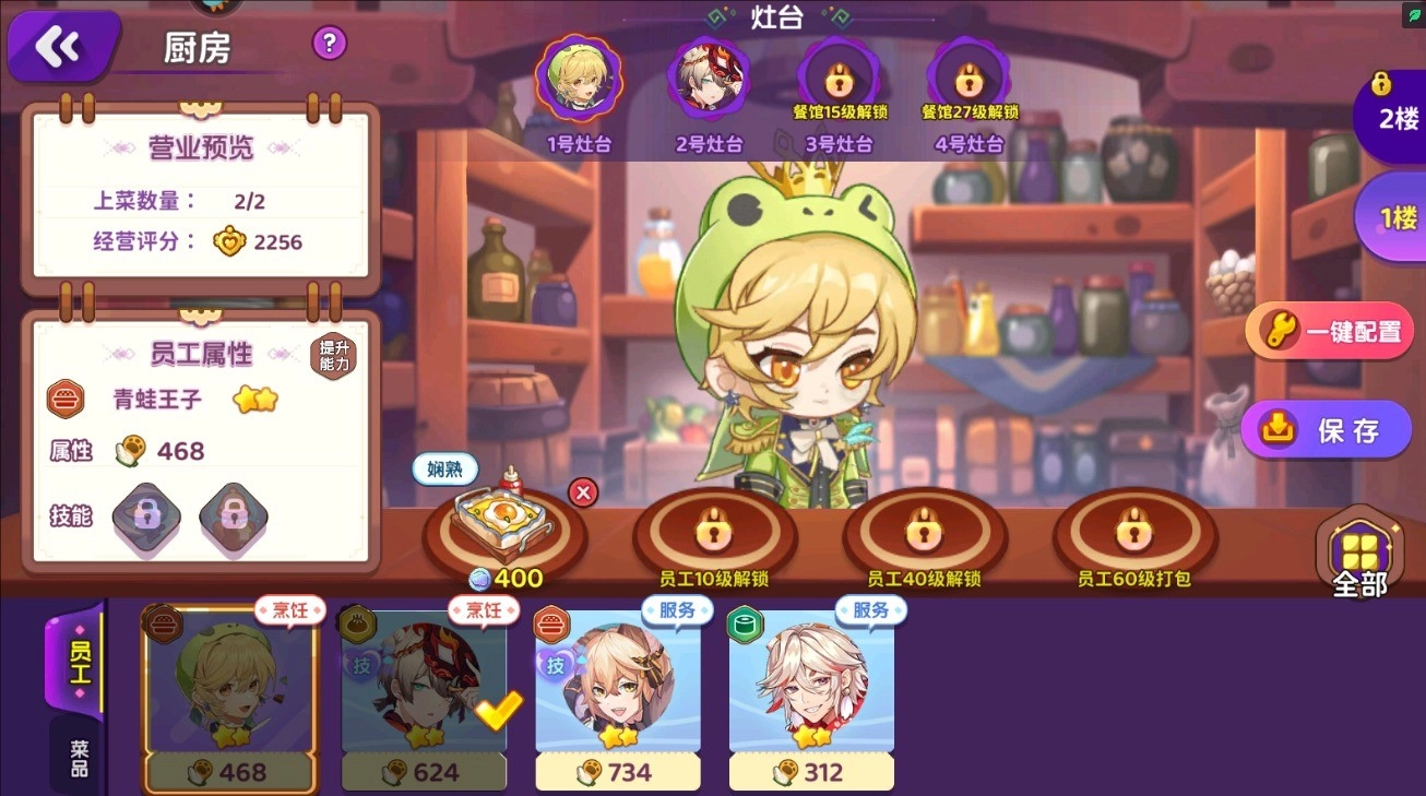 1、餐馆的核心区域,可以上阵指定厨师和菜品。