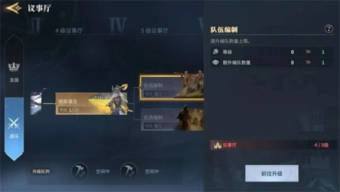 第一日尽快提升主城等级,解锁队伍编制科技,能让你开启第二、第三队,这样就能体验多队伍的乐趣。