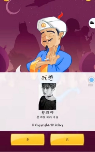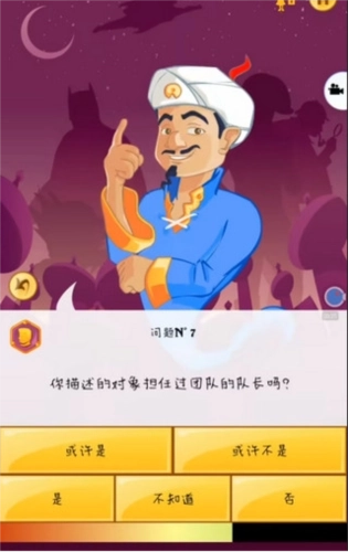 3、总共有7个问题,等你把这些问题都回答完,神灯就会推测出你心里想的那个人物。
