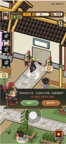 5、建议早点把地位提升到秀女,然后抓羊,玩羊了个羊,和那个羊了个羊的区别就是可以无限次数看广告用道具,只要肯看广告就能赢,赢一把给十万铜,一千地位,如果佛系玩家就想挂机收菜可以不玩,但追求效率真心建议玩玩。主要是城外后期也好,城内也好,升级建筑动不动几万铜,才人1到3分别要20w,30w,40w。