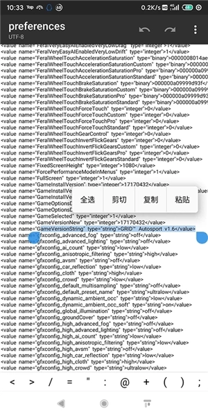 1、首先准备一个MT管理器,无需root权限就能进行修改操作,然后找到路径:/Android/data/com.feralinteractive.gridas/files/feral__support/ 下的preferences文件。