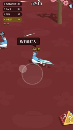 3、收集与攻击:松开摇杆即可攻击其他孔雀,收集更多羽毛。