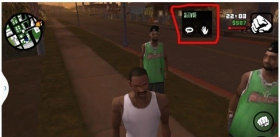 在帮派聚集的地方,会随机出现许多身穿绿色服装的人,他们都是潜在的追随者。卡尔·约翰逊在徒手状态下(避免使用武器以防误伤),点击这些绿衣人,屏幕上会弹出“对拳”按钮和“X”按钮,选择“对拳”即可成功招募。