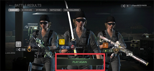 5、对局结束后,可前往战绩页面查看本局表现;若想再次挑战,点击“Play Again”即可重新开始。