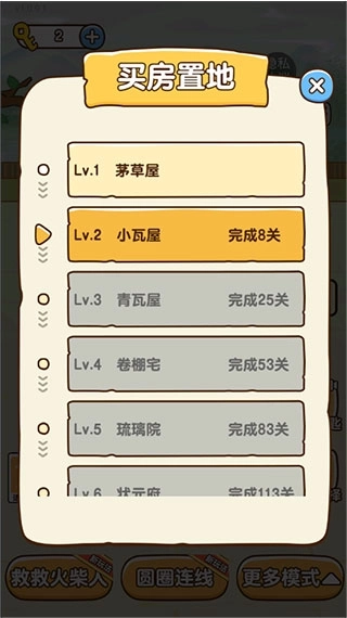 3、通过相对应的关卡来升级房屋;