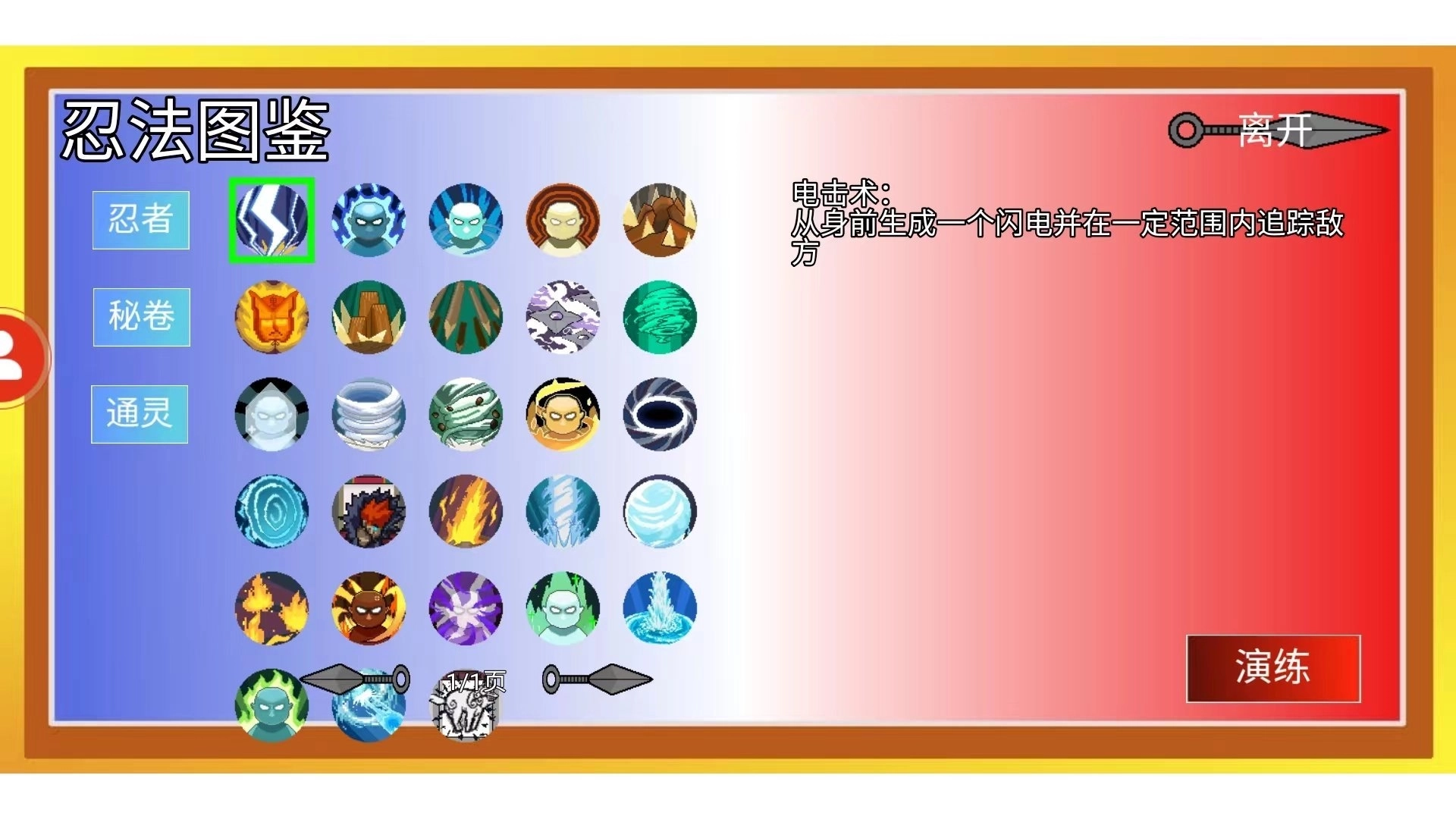 3、进入【图鉴】界面,我们可以看到每个忍者的技能属性,以及秘卷和通灵的相关说明;