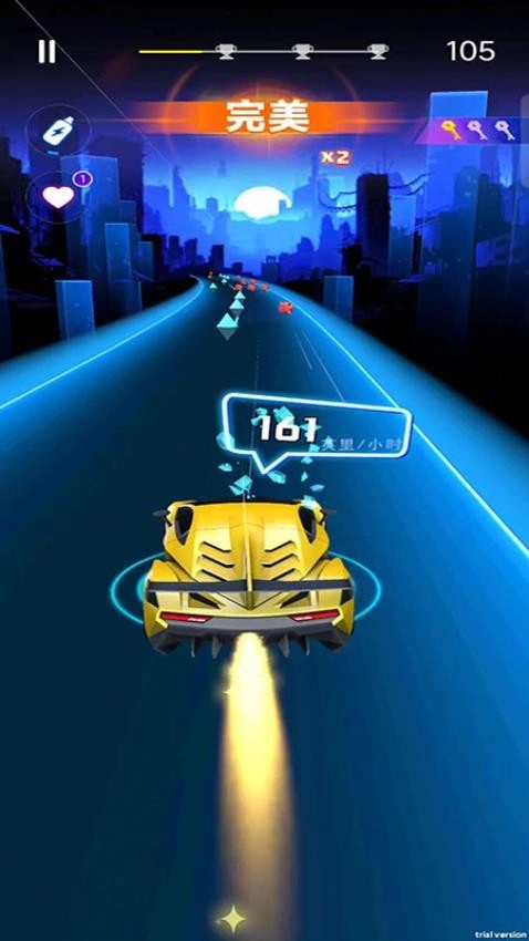 1、车辆的动作要和音乐节奏保持同步,依据节奏的指引来灵活操控汽车行驶,充分展现车辆的性能速度和驾驶者的反应能力,防止碰撞情况发生。