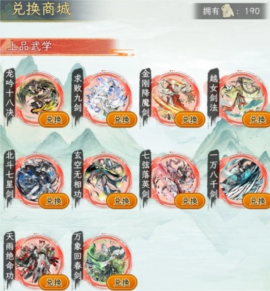 万书楼每累计250次抽取,就能自选一个红色武学。这里建议先攒着,等遇到强力的内功再换。(ps.内功不存在凑羁绊的说法,不用执着于换一整套武学,哪个强度高就换哪个)