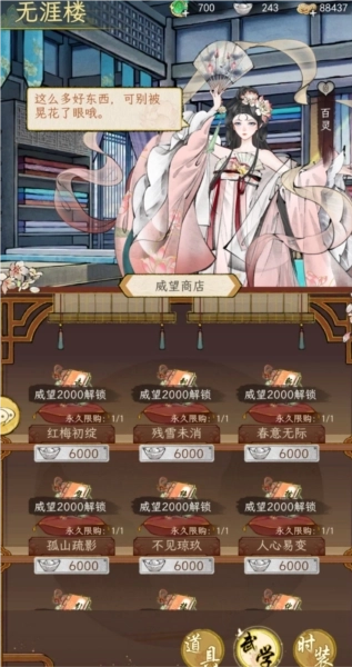 可以看到大部分红色武学都集中在绝代、天骄、名士这类角色身上,刷到2w好感所需的礼物其实并不便宜。不过这里有个平民福音,那就是谢敏行——作为普通NPC却掌握着红色顶级武学,性价比直接拉满!玉女流霜剑也是一门很强的红色功法,而且万书楼里根本抽不到。唯一有点遗憾的是谢敏行没法学习红色内功,另外二测时送礼给的抽数也被策划砍掉了。