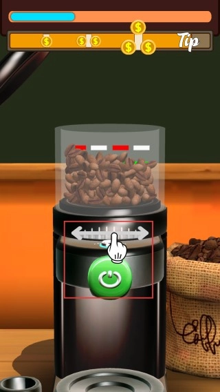 2、按照提示,点击绿色开关来制作咖啡,以此推动游戏进度。